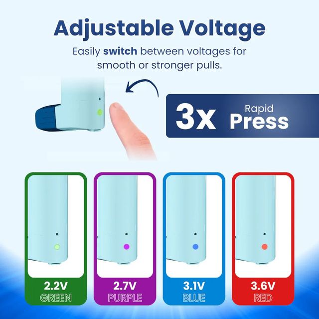 4 adjustable voltage settings – 2.2V, 2.7V, 3.1V, 3.6V